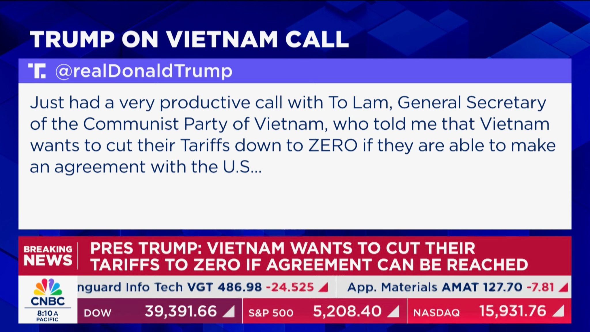 表四 川普與越南總理通話後的推文