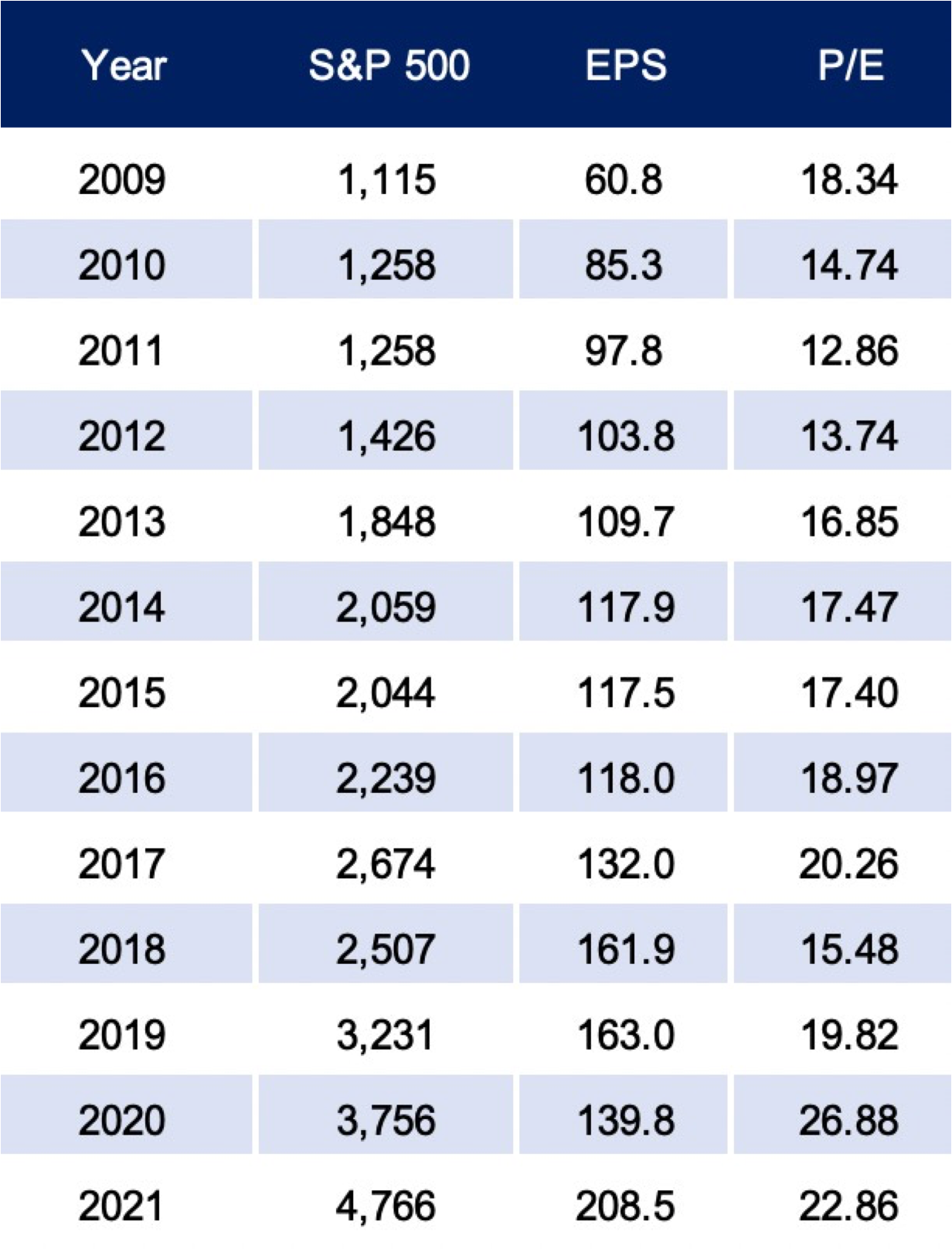 如果計算從 2009 年實施量化寬鬆以來 S&P 500 公司的 P/E 倍數(表四 S&P 500 公司的 P/E 倍數),我們發現: