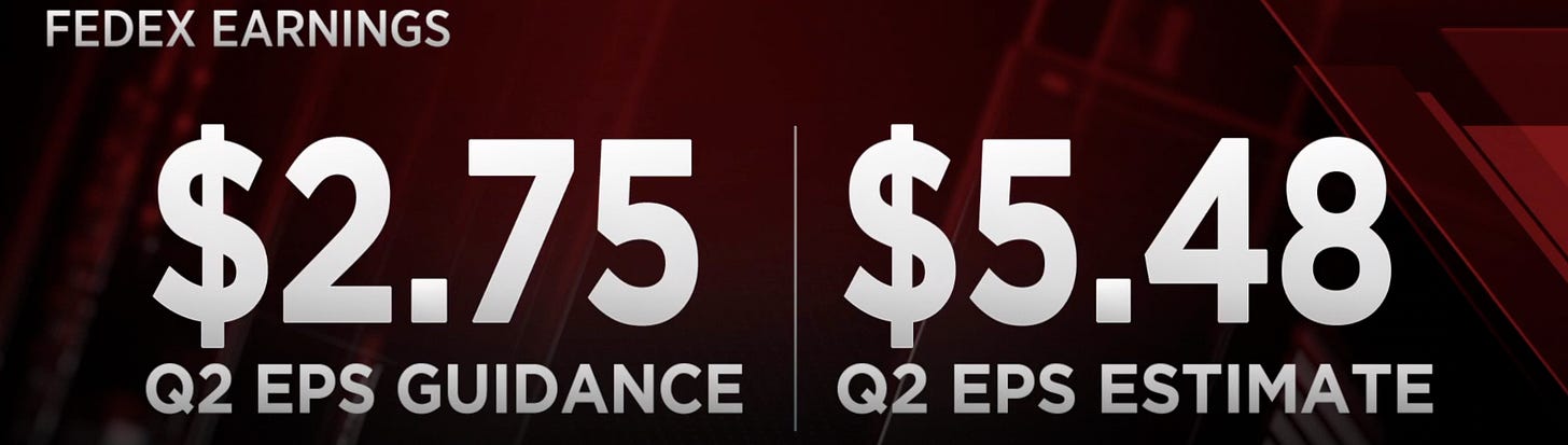FedEx 的盈餘下調雖然只是單一公司事件,但 FedEx 身為全球運輸行業的領導者之一,業務遍及全球 220 個國家,在全球高附加價值的經濟活動上有一定的代表性。公司全球的營運勾勒出一副需求下降、成本高企、獲利衰退的跡象。與高通膨期間,利息上升、需求下降、失業上升、經濟衰退的軌跡不謀而合。