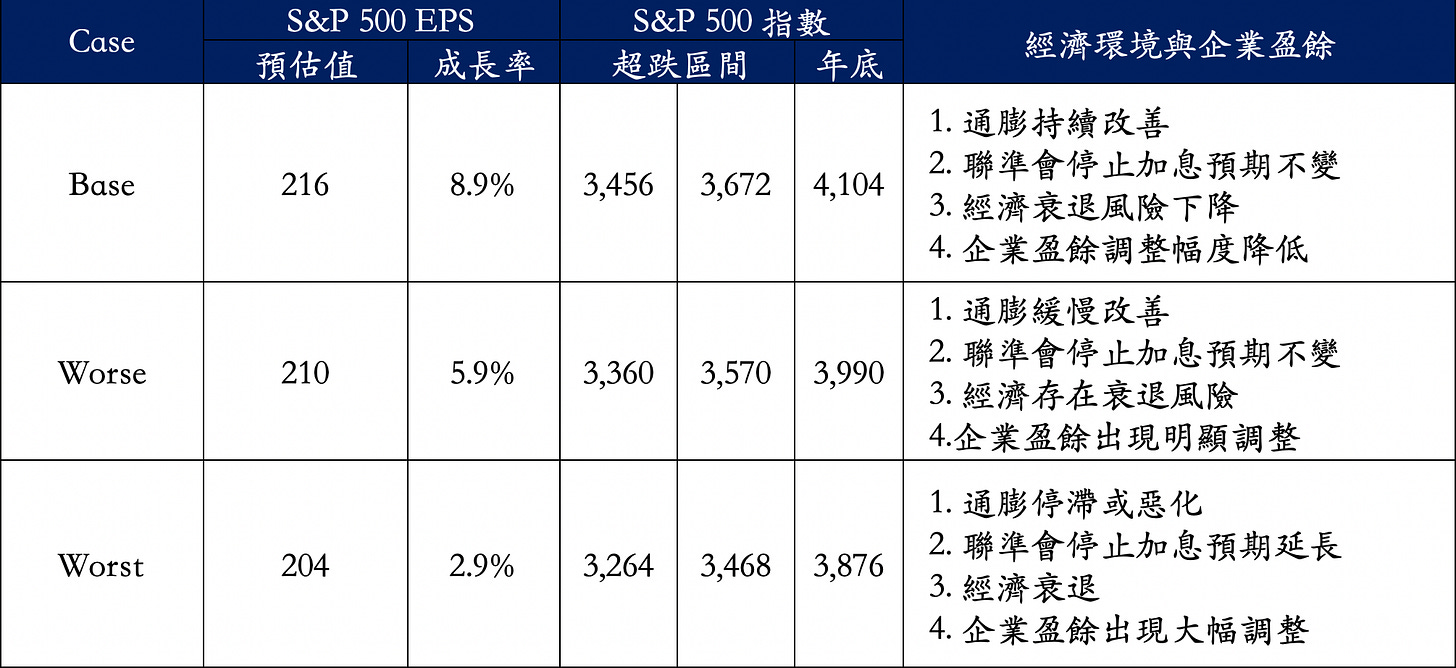 目前公司基本面依然偏空,公司盈餘在第一季與第二季仍然有下調的壓力。但是,由於經濟衰退的風險降低,我們對 S&P 500 公司盈餘的預期提高。同時,由於市場對 S&P 500 公司股價風險的承受度明顯上升,我們將 S&P 500 指數超賣區的預估提高到 3,450 點至 3,650 點。