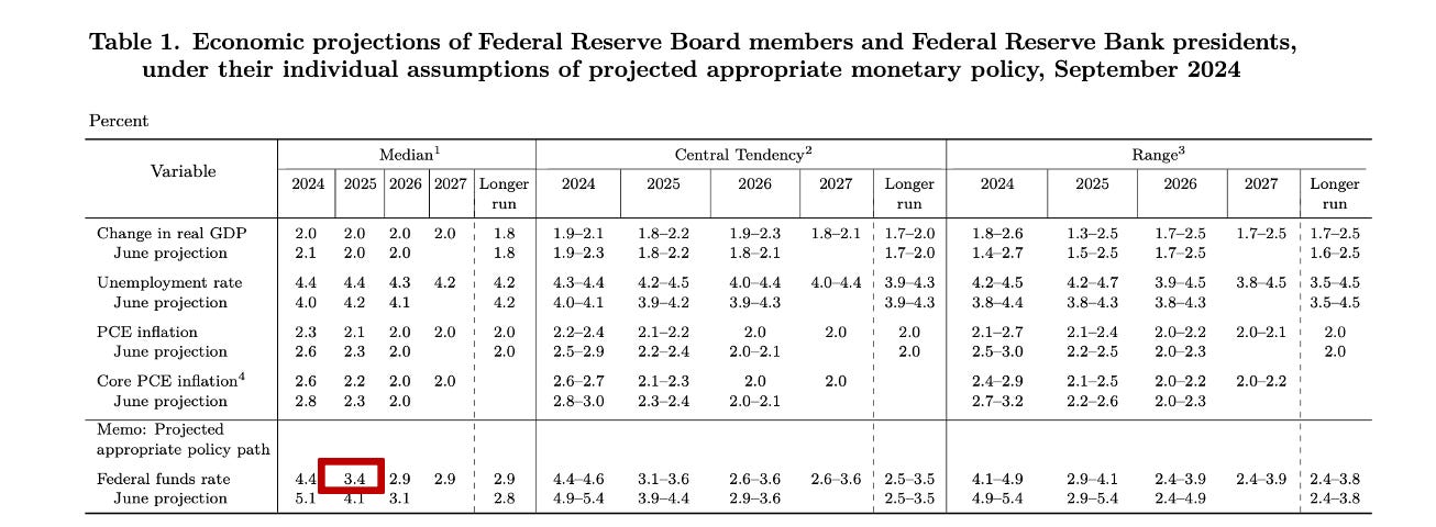 表二 聯準會最近的經濟預測,2024 年 9 月