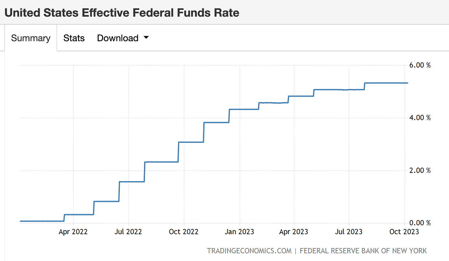 自從聯準會於 2022 年 3 月開啓 40 年以來最強的加息模式以來,目前聯邦資金利率已經在 5.25%~5.50% 的高水位(表二)。但在,目前經濟增長較預期強勁,失業率仍然處於低位,造成通膨中排除住房不計的核心服務通膨(通常稱為超級核心通膨)依舊頑強,提高了聯準會今年再度加息的可能,也造成市場對短期實質利率預期的上升,形成公債殖利率走高的原因之一。