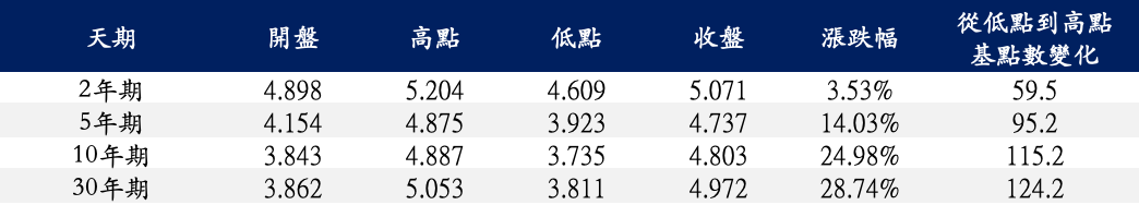 表一 美國公債殖利率變化(7-1-23~10-6-23)