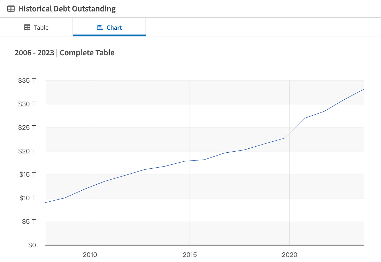 表五 美國債務總金額(兆美元)