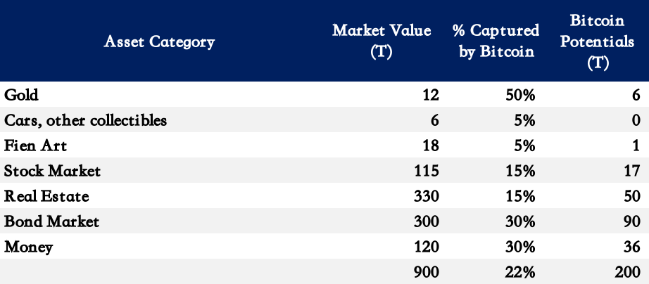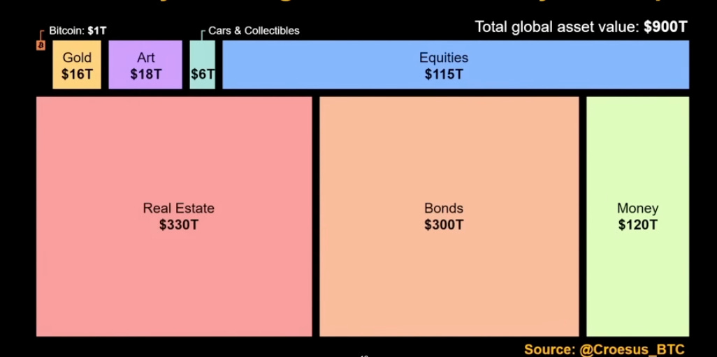 目前,比特幣 2 兆美元的市值僅僅佔了全球 900 兆美元資產總市值的 0.2%,這將是本世紀最大的一次資產移轉。