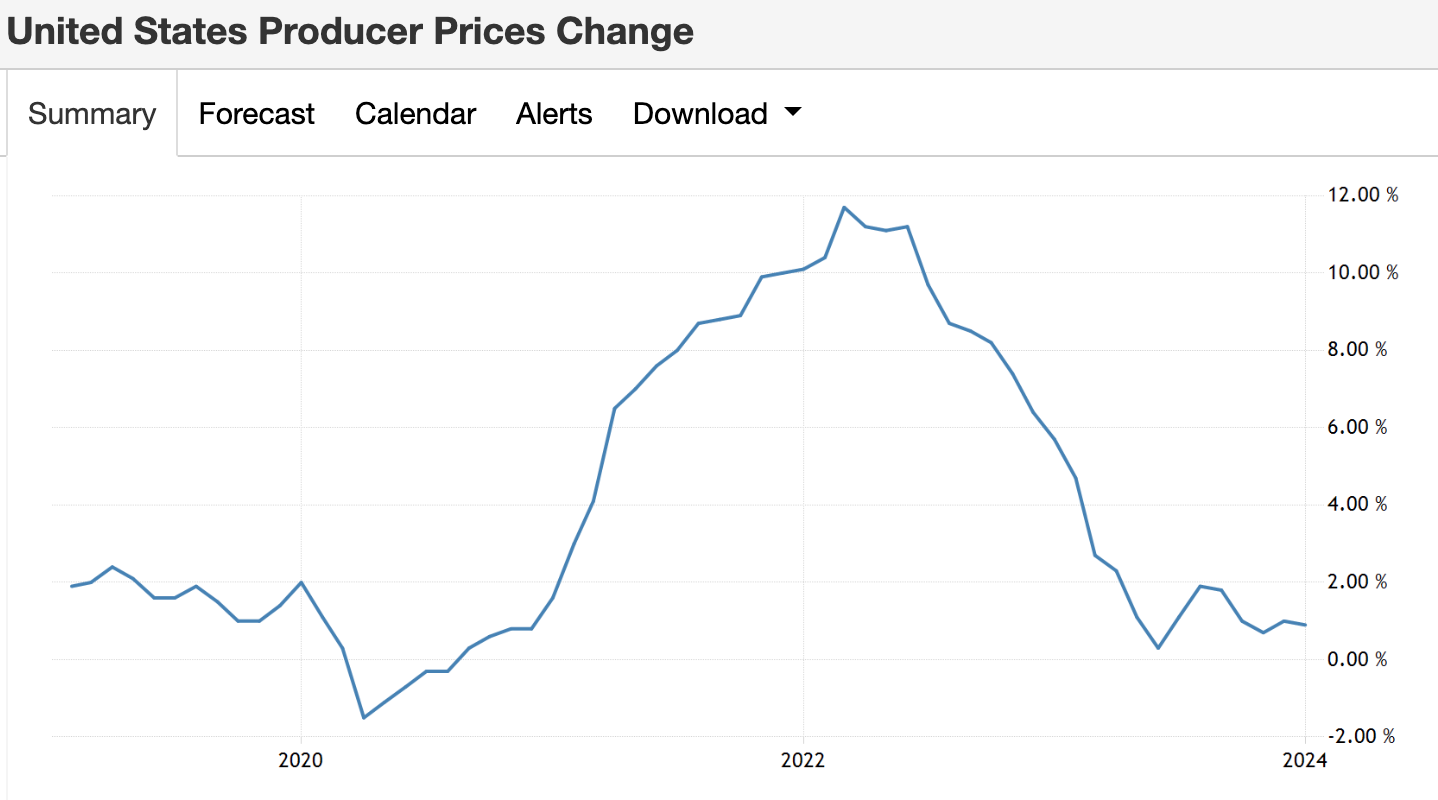 從長期趨勢來看,這一切似乎又都是暫時的。亞特蘭大聯準會 GPDNow 模型預計的 2024 年第一季實質 GDP 增長率仍然為 2.9%,美國經濟的韌性依然強大。PPI 年增率0.9%,也仍然在低位的 。同時,不包含能源與食品價格的一月核心 PPI 個人消費最終需求年增率(PPI Final Demand Personal Consumption)也僅為 2.4%。