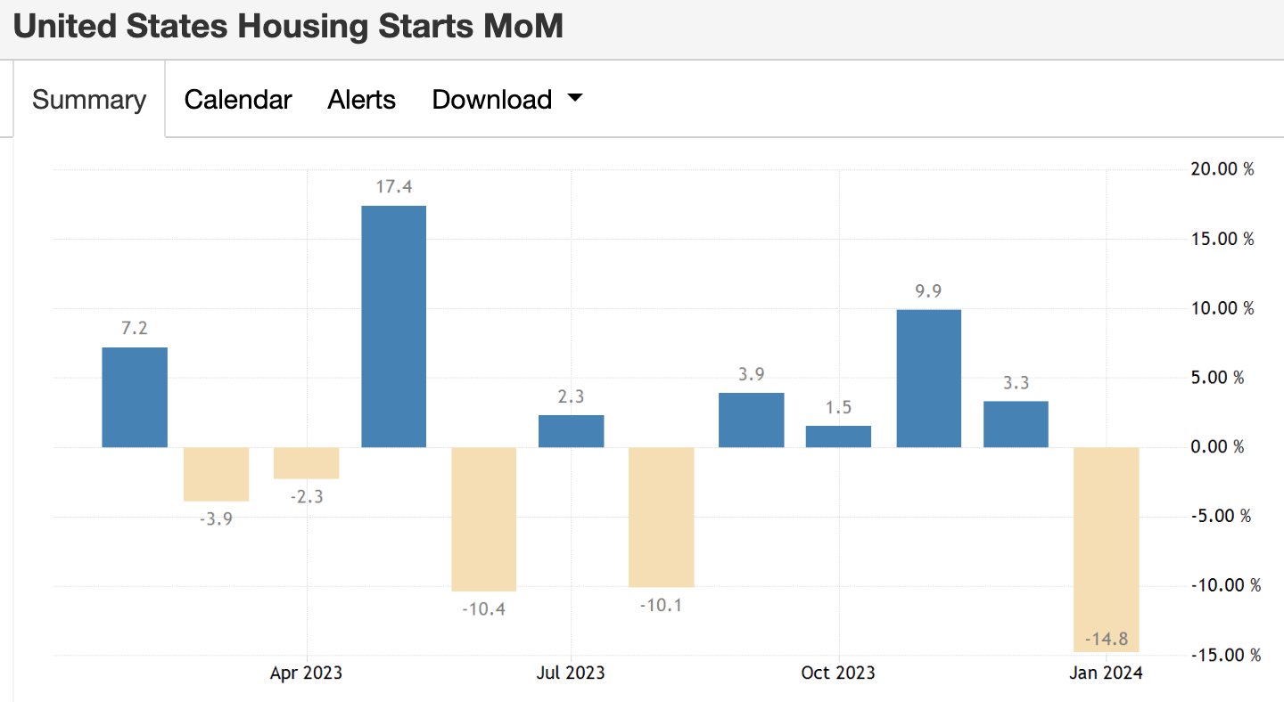 上周公布的 1 月份核心消費者物價指數(Consumer Price Index,CPI)年增率 3.9% (表一)與生產者物價指數年增率 0.9%(Producer Price Index,PPI)(表二),雙雙高於預期。然而,零售金額較上月減少 0.8%,年增率也大幅下滑到 0.65%(表三),不僅為 2020 年 5 月以來最低,也低於疫情前的水準。同時,新屋開工率也較上月大幅減少 14.8%(表四),美國似乎出現了通膨趨熱,經濟趨冷的現象。