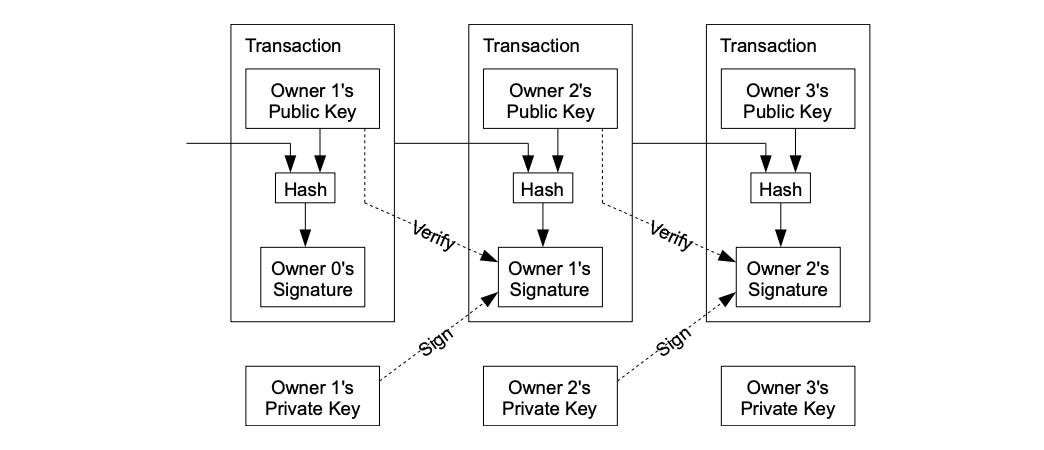 換句話說,在比特幣的網路中,買家和賣家保持匿名,但所有人都可以看一枚比特幣從 A 轉到 B。同時,Satoshi 以區塊鏈的技術阻止了 A 再次花費,避免了同一比特幣的雙重支付。