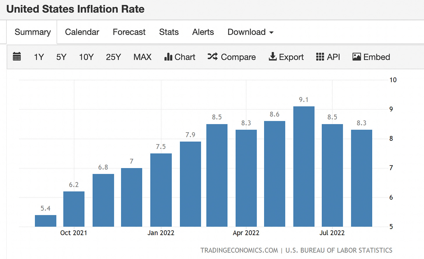 2022 年 8 月,美國年通貨膨脹率連續第二個月放緩,從 7 月的 8.5% 降至 8.3%,為 3 個月以來的最低水平 (見表二 美國年通貨膨脹率 )。