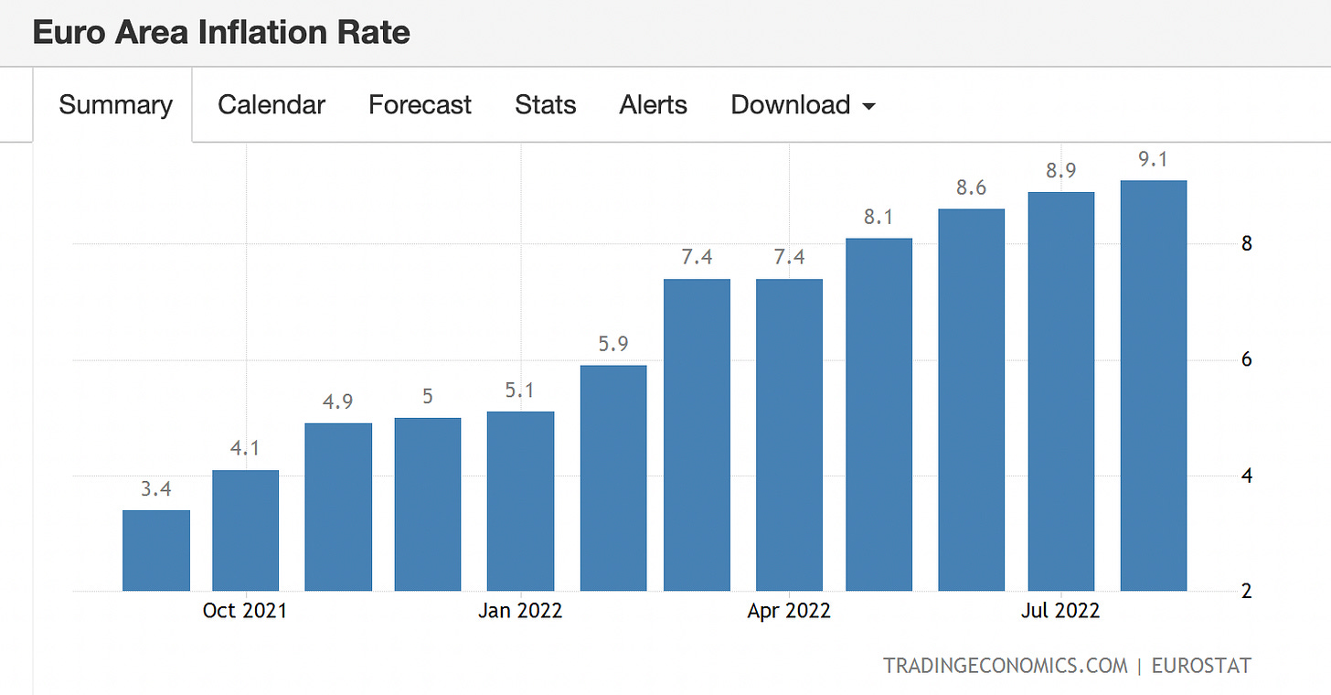 雪上加霜的是,由於俄羅斯無限期關避部分天然氣的供給,預期歐元區 9月份通膨將繼續上升到 9.6%,同時失業率高達 6.6%。經濟學家預計,歐元區前兩大經濟體的德國和英國,將比美國更早步入衰退的行列。