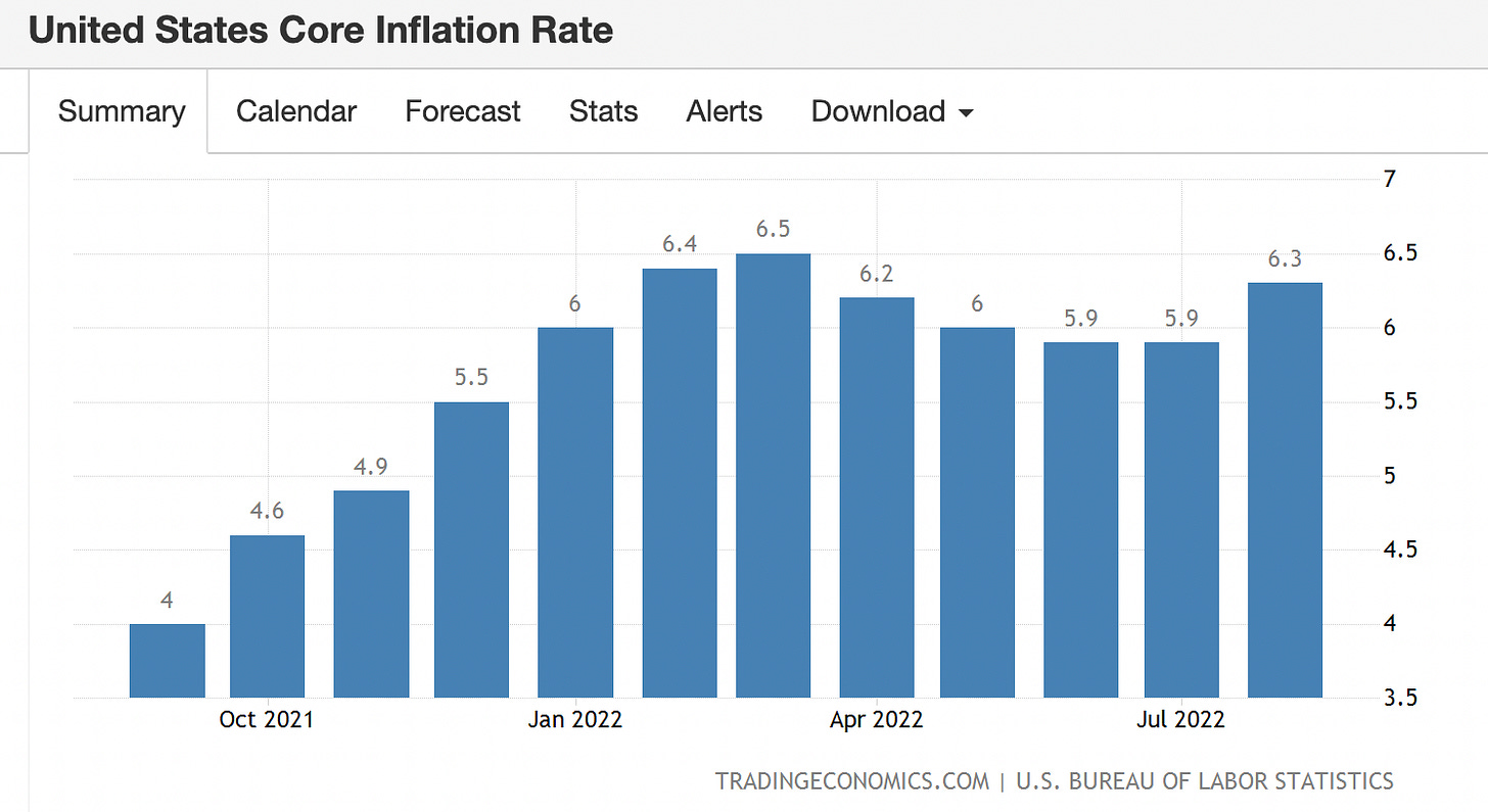 同時,食品價格一路攀高,8 月份年上漲率達 11.4%,為自 1979 年以來最高,房租漲幅從 7 月的 5.7% 上升到 6.2% ,為自 1984 年以來最高,二手車和卡車方面的通膨也繼續上漲 7.8%。與此同時,不包括波動較大的能源和食品價格的核心 CPI 指數同比上漲了 6.3%,為 3 月份以來的最大漲幅,明顯高於 6 月和 7 月的 5.9% (見表三 美國核心 CPI 指數)。