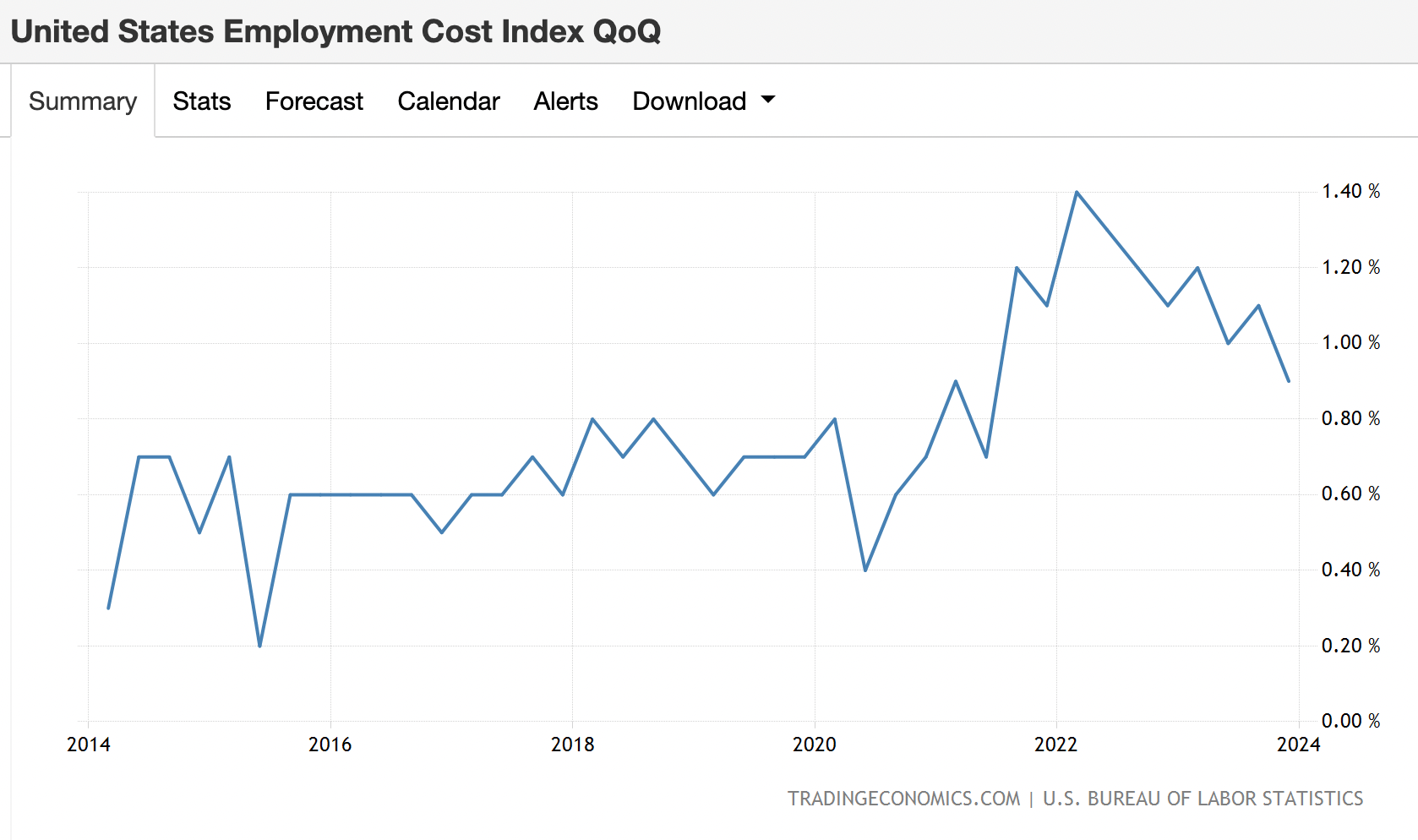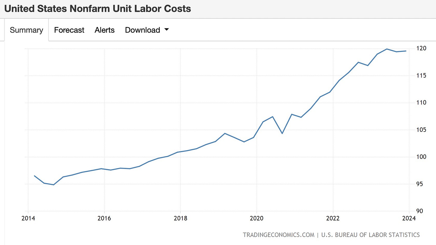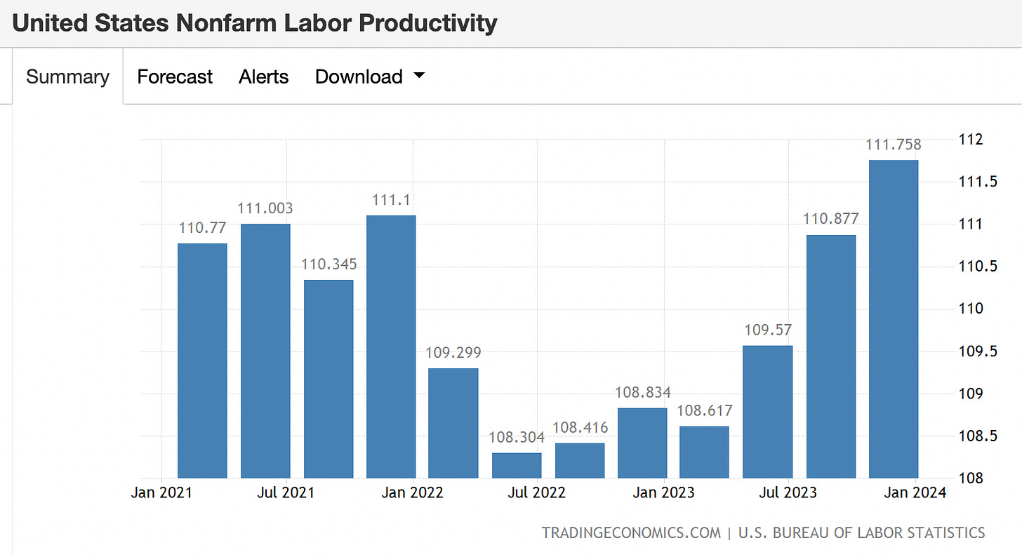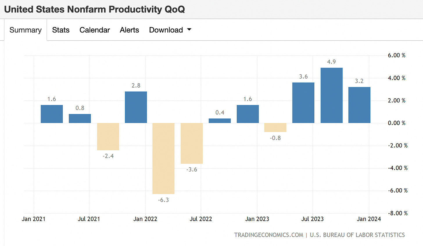 非農勞工產率在 2023 年第 4 季度增長 3.2%,不但高於市場預期的 2.5%,也連續 3 個季度超過 3% 的增長。