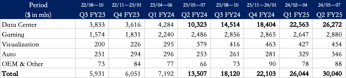 表一 Nvidia 過去 8 個季度的營業收入(百萬美元)