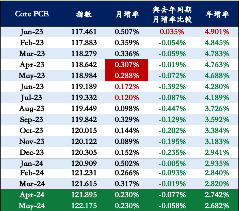 表二 核心 PCE 月增率與年增率