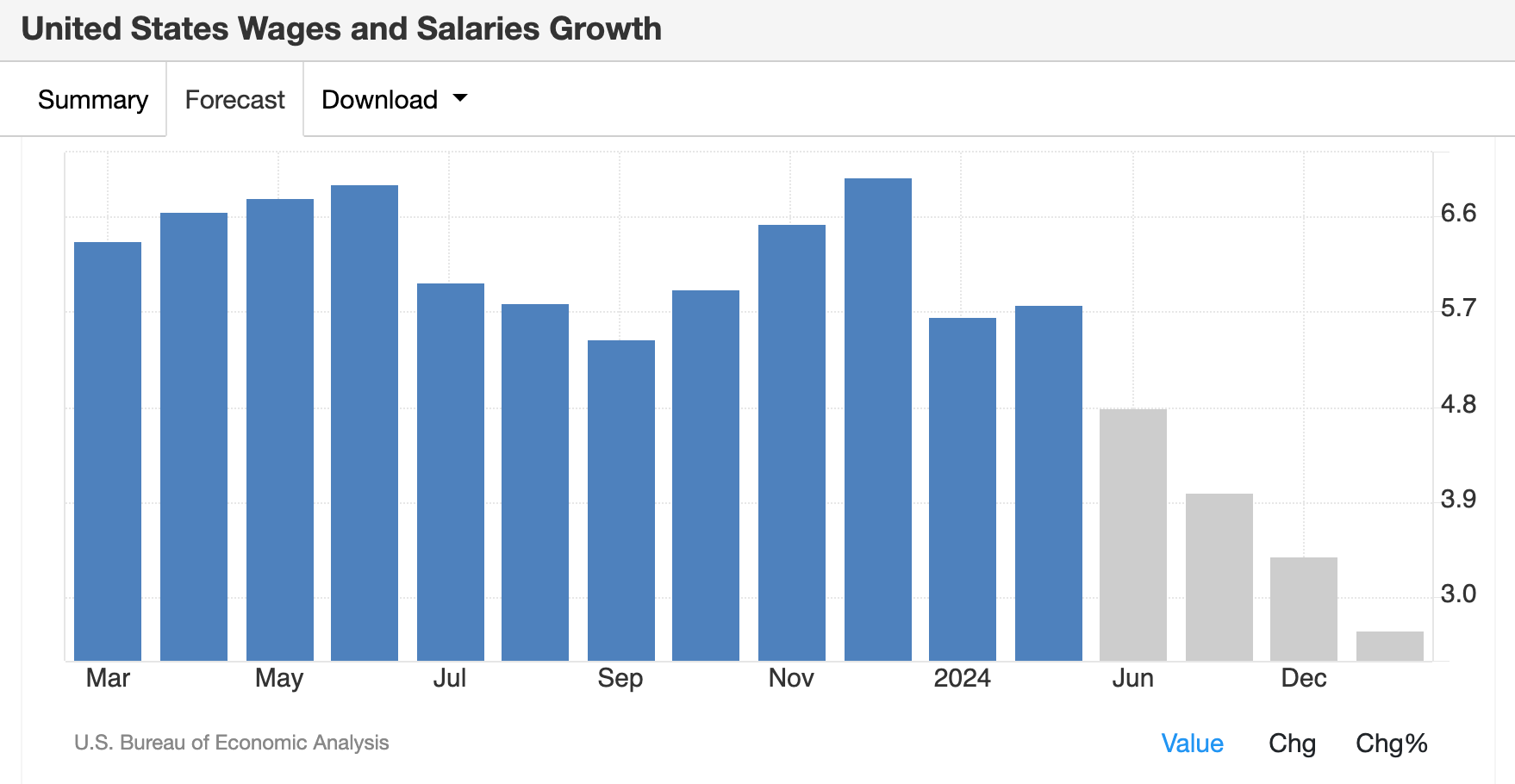 薪資增長率的下降成為舒緩通膨的另一個重要的因素。