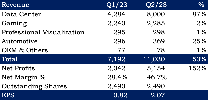 值得注意的是,公司的獲利能力大幅提升,淨利率從第一季的 28% 上升到第二季的 46%,淨利潤較上季大幅增加 152%,預估 EPS 從每股 0.82 美元跳升到每股 2.07 美元。